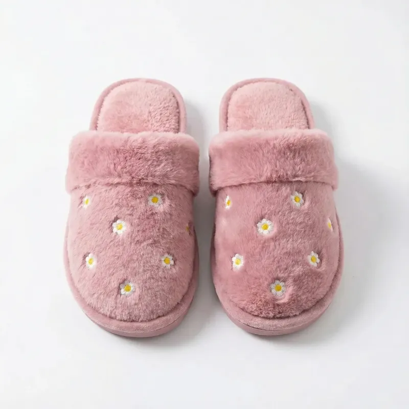 Ніжні та неймовірно приємні на дотик жіночі кімнатні тапочки, які подарують вашим ніжкам тепло та комфорт. Модель виконана у красивому припиленому рожевому кольорі з м'якого плюшу (штучне хутро). Головна родзинка дизайну — мила вишивка у вигляді білих ромашок, що додає взуттю весняного настрою навіть у холодні зимові вечори. Тапочки мають класичний фасон із закритим носком, що добре зберігає тепло. Устілка також хутряна та м'яка. Підошва гнучка, не ковзає та не створює зайвого шуму при ходьбі. Це ідеальний варіант для затишного домашнього відпочинку або як милий подарунок для близької людини. Особливості: Матеріал: Високоякісний м'який плюш, який не "лізе" та легко чиститься. Дизайн: Трендовий квітковий принт (ромашки). Комфорт: Легкі, теплі та не парять ногу. Характеристики: Тип: Кімнатні капці Матеріал верху: Плюш (Текстиль) Колір: Рожевий (Пудра) Декор: Вишивка "Ромашки" Розмір: 40-41 Сезон: Осінь / Зима / Весна
