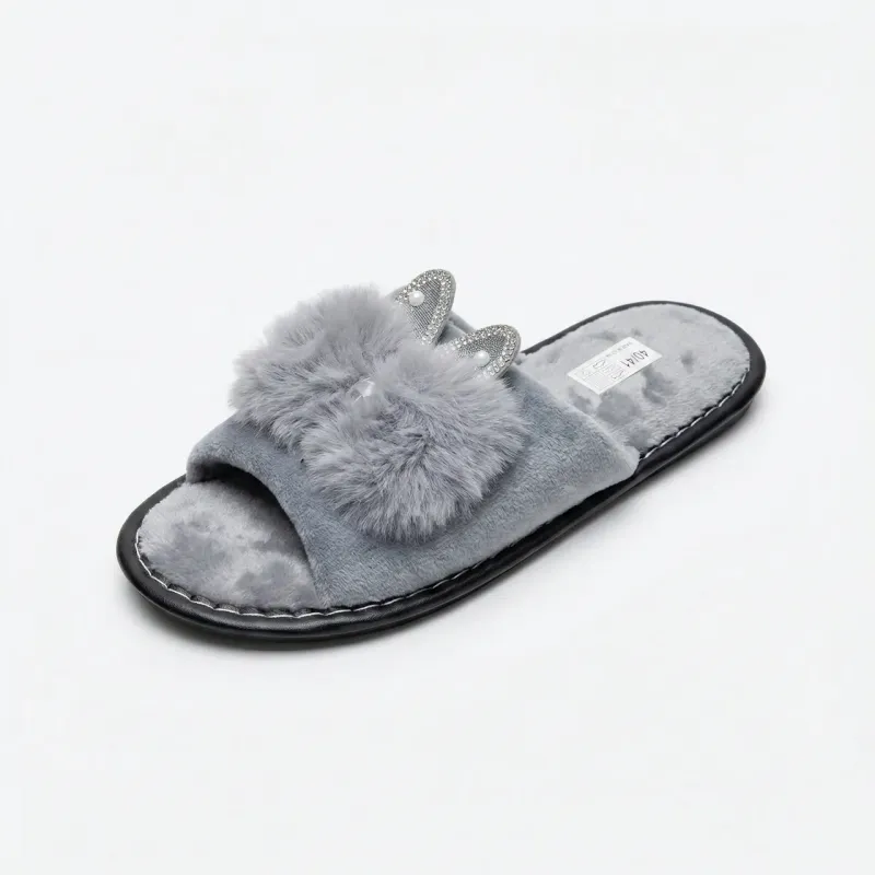 Подаруйте своїм ніжкам справжній комфорт та затишок з цими чудовими пухнастими тапочками! Ця модель поєднує в собі м'якість штучного хутра та вишуканий дизайн. Головна "родзинка" пари — декоративні елементи у вигляді вушок, щедро прикрашені блискучими стразами, що додають вашому домашньому образу нотку гламуру та грайливості. Тапочки виконані з високоякісних матеріалів, які приємні на дотик і чудово зберігають тепло. Відкритий носок дозволяє шкірі дихати, тому в них буде комфортно не тільки взимку, але й у прохолодні весняні або осінні дні. Підошва надійно прошита, що гарантує довговічність виробу, а універсальний сірий колір пасуватиме до будь-якого домашнього одягу. Ці шльопанці стануть ідеальним вибором для тих, хто цінує зручність та красу в деталях. Вони також стануть чудовим подарунком для близької людини, мами, сестри або подруги. Характеристики: Тип взуття: Домашні тапочки (шльопанці) Матеріал верху: Штучне хутро (текстиль) Матеріал устілки: Штучне хутро Декор: Вушка зі стразами Підошва: Прошита, нековзна Колір: Сірий Сезон: Осінь/Зима/Весна Країна виробник: Китай Розміри: 36-41