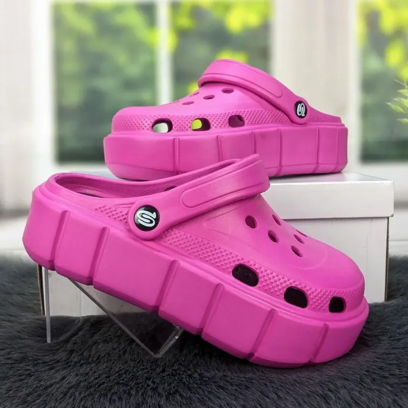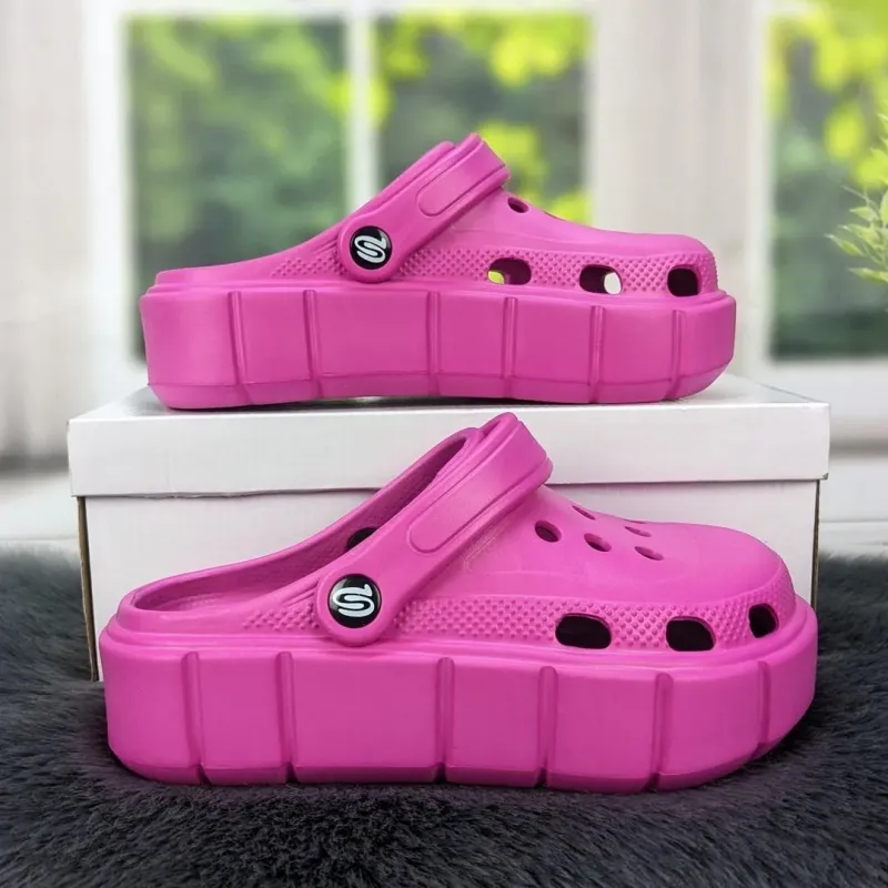 Жіночі рожеві крокси на високій платформі, сабо з піни EVA, пляжне літнє взуття 36-41.