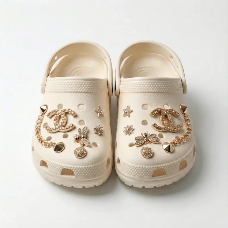 Вишукані сабо кольору "нюд" (беж). Прикрашені золотими джибітсами та ланцюжком. Універсальний колір, що пасує до всього. Легка піна EVA. Розміри 36-41. Повний опис: Ці бежеві сабо — втілення елегантності та комфорту. Відтінок Nude (тілесний) ідеально зливається з кольором шкіри, візуально подовжуючи ніжки, а золотий декор додає образу розкоші. Це ідеальний варіант для тих, хто не хоче обирати між чорним та білим. Бежевий колір м'який, не мазкий і пасує абсолютно до будь-якого літнього одягу — від яскравих сарафанів до джинсових шортів. Переваги моделі: Трендовий колір: Беж виглядає дорого і стримано ("Old Money" style). Універсальність: Найбільш компліментарний колір для засмаги. Комфорт: Зручна колодка та поворотний ремінець для фіксації п'яти. Характеристики: Тип: Сабо / Крокси Матеріал: Піна (EVA) Колір: Бежевий (Cream / Nude) Декор: Золотистий ланцюг, джибітси (камінці, бджілки, лого) Розміри: 36-41
