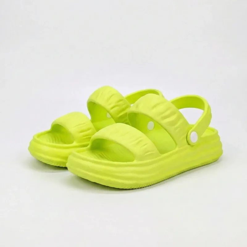 - Ідеально для пляжу та басейну: Матеріал EVA абсолютно водонепроникний та миттєво висихає. Висока об'ємна підошва захищає ніжки від гарячого піску та дрібних камінців, а антиковзаючий ефект гарантує безпеку на мокрій плитці.