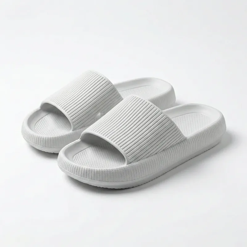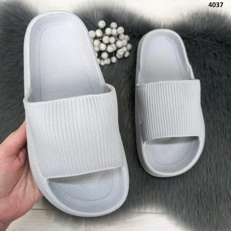 Ці білі шльопанці на масивній підошві — втілення сучасного мінімалізму та комфорту. Ідеальний вибір для тих, хто любить прості, але стильні речі. Модель повністю відлита з матеріалу EVA (пінка), що робить її невагомою та дуже м'якою. Родзинка дизайну — широкий ремінець з фактурою "в рубчик", яка імітує текстиль, додаючи взуттю затишного вигляду. Товста підошва відмінно амортизує кроки, а рельєфна устілка з масажним ефектом запобігає ковзанню ноги. Вони універсальні: підійдуть і для пляжу, і для душу, і як стильні домашні капці. Характеристики: Тип: Шльопанці / Сланці. Сезон: Літо / Всесезонні (для дому). Колір: Білий / Світло-сірий (White/Light Grey). Матеріал: EVA (пінка). Розмірний ряд: 37, 38, 39, 40, 41. Особливості: Текстурний верх, масивна підошва.
