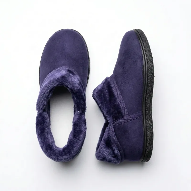 Затишні та стильні жіночі чуні — ідеальне рішення для тих, хто мерзне вдома взимку. На відміну від звичайних капців, ця модель повністю закриває стопу до щиколотки, зберігаючи дорогоцінне тепло. Верх виконаний з м'якого текстилю, стилізованого під замшу (еко-замша) насиченого фіолетового кольору, що надає взуттю охайного та привабливого вигляду. Всередині чуні щедро утеплені густим штучним хутром, яке дарує відчуття м'якості та комфорту з першої хвилини. Широкий вхід дозволяє легко взувати їх без допомоги рук, а відворот хутра додає моделі стилю "домашніх угг". Підошва виготовлена з гнучкого та міцного ПВХ. Вона надійно прилита до верху (не розклеїться), не ковзає по плитці чи ламінату та ізолює стопу від холодної підлоги. Чудовий варіант для подарунка мамі чи бабусі, або для власного комфорту в холодні вечори. Характеристики: Сезон: Зима / Осінь Матеріал верху: Текстиль (під замшу) Утеплювач: Густе штучне хутро Підошва: ПВХ (гнучка, не ковзає) Колір: Фіолетовий (Чорнильний) Розміри в наявності: 37, 38, 39, 40, 41 Країна виробник: Україна