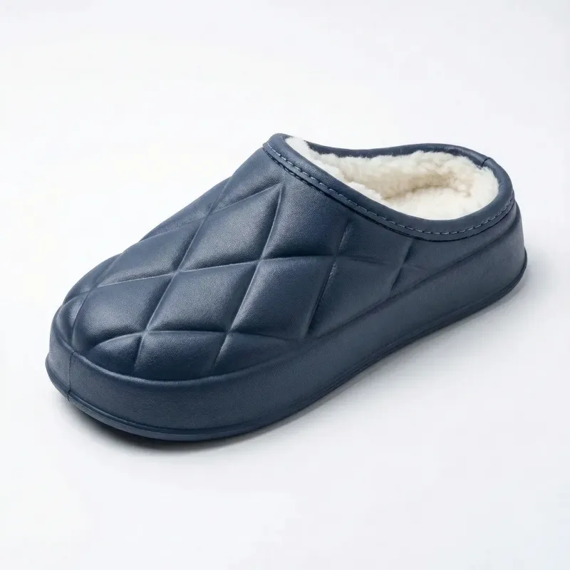 Акуратні жіночі сабо з піни ЕВА. Дизайн "стьобаний ромб". Всередині тепле біле хутро. Легкі, водонепроникні, морозостійкі. Виробник Україна. Повний опис: Зимові жіночі сабо TapMal — це доказ того, що навіть гумове взуття може виглядати акуратно. Модель виконана у темно-синьому кольорі з рельєфним візерунком "ромбик", що нагадує стьобані куртки. Це взуття незамінне для приватного будинку, дачі або роботи в прохолодних приміщеннях. Цілісна лита основа з піни ЕВА гарантує, що ваші ноги залишаться сухими навіть у калюжах, а густе хутро всередині збереже тепло. Чому жінки обирають цю модель: Естетика: Завдяки фактурі "ромб" вони виглядають цікавіше, ніж звичайні гладкі галоші. Невагомість: Піна ЕВА дуже легка, ноги не втомлюються навіть після цілого дня на ногах. Тепло: Внутрішня підкладка зі штучного хутра (під овчину) дуже м'яка та затишна. Безпека: Рифлена підошва забезпечує стійкість на слизьких поверхнях. Характеристики: Виробник: TapMal (Україна) Матеріал: Піна ЕВА (EVA) Утеплювач: Штучне хутро (незнімне) Колір: Темно-синій (Navy) Розміри: 36-41 (спарені: 36/37, 38/39, 40/41)