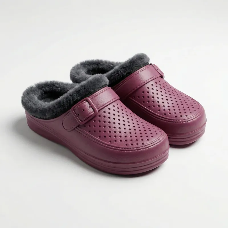 Шукаєте взуття, яке можна взути за секунду і вибігти на вулицю, не боячись холоду? Ці утеплені калоші-сабо — ідеальне рішення! Вони незамінні для мешканців приватних будинків, для роботи в саду в холодну пору року або просто як теплі домашні капці. Переваги моделі: Теплоізоляція: Всередині калоші повністю обшиті густим, м'яким еко-хутром, яке чудово зберігає тепло ніг. Зручність: Відсутність задника дозволяє взувати та знімати їх миттєво, без допомоги рук. Матеріал: Виготовлені з легкої піни (EVA), яка не пропускає вологу та бруд. Їх дуже легко мити — достатньо протерти ганчіркою. Дизайн: Перфорація зверху (імітація) та декоративний ремінець надають їм охайного вигляду. Характеристики: Розміри: 37, 38, 39, 40, 41 Колір: Бордовий (Марсала) Матеріал верху: Піна (EVA) Утеплювач: Штучне хутро (незнімне) Сезон: Осінь / Зима / Весна