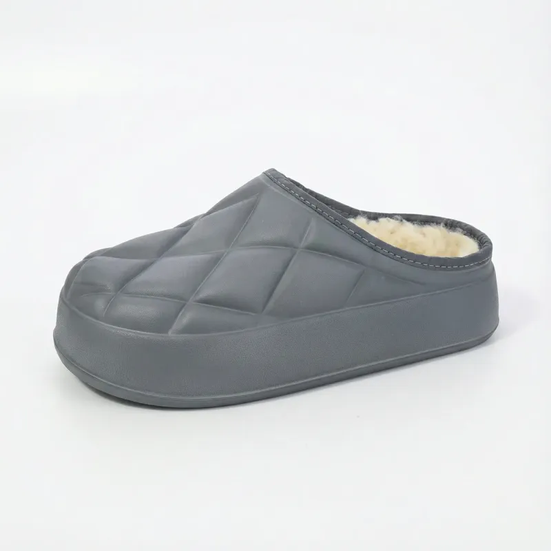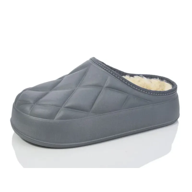 Стильні та неймовірно теплі жіночі капці-"дутики" у універсальному сірому кольорі. Ця модель поєднує в собі комфорт домашнього взуття та сучасний вуличний стиль. Верх виконаний з водовідштовхувального матеріалу (ЕВА/штучна шкіра) з ефектом стьобання "ромбиком", що виглядає дуже актуально в цьому сезоні. Всередині капці утеплені густим та м'яким еко-хутром (білого або світлого кольору), яке чудово зберігає тепло. Висока потовщена підошва-платформа не лише додає зросту, але й виконує функцію термоізоляції — ваші ноги не змерзнуть навіть на найхолоднішій підлозі (плитка, бетон). Завдяки закритому носку та матеріалу верху, за ними дуже легко доглядати — достатньо просто протерти вологою серветкою. Переваги: Трендовий дизайн: Ефектний "дутий" вигляд. Практичність: Не промокають, легко миються. Комфорт: Висока підошва амортизує кроки та захищає від холоду знизу. Характеристики: Тип: Капці-дутики (Сабо утеплені) Матеріал верху: ЕВА / Штучний матеріал (водовідштовхувальний) Утеплювач: Штучне хутро Колір: Сірий Підошва: Платформа (ПВХ/ЕВА) Розміри: 37-41 Сезон: Зима / Осінь