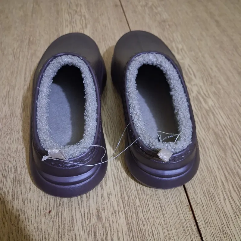 Зручні та практичні жіночі сабо від українського бренду Dago Style — це незамінне взуття для холодної пори року. Модель виконана у благородному коричневому (бронзовому) кольорі з легким перламутровим відливом. Основа виготовлена методом суцільного лиття з піни ЕВА, що робить взуття повністю водонепроникним та неймовірно легким. Внутрішня частина утеплена густим світлим штучним хутром (під овчину), яке забезпечує відмінну теплоізоляцію та комфорт навіть у морозні дні. Сабо мають зручну колодку та трохи піднятий задник, що добре фіксує стопу. Модель декорована фірмовою металевою кнопкою з логотипом бренду. Це ідеальний вибір для роботи в саду, швидкого виходу на подвір'я, прогулянок з собакою або як тепле змінне взуття для роботи в холодних приміщеннях. Підошва стійка до зносу та має протиковзкий протектор. Характеристики: Виробник: Dago Style (Україна) Сезон: Зима / Холодна осінь-весна Матеріал верху: Піна ЕВА (EVA) — вологостійка Матеріал підкладки: Штучне хутро (світле) Колір: Коричневий / Бронзовий Розміри: 36-41 Особливості: Дуже легкі, легко миються