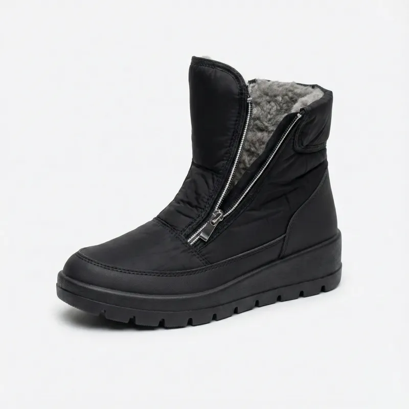 Практичні та недорогі жіночі півчобітки (дутики) чорного кольору, які стануть найкращим вибором для морозної зими. Ця модель поєднує в собі легкість спортивного взуття та тепло домашніх капців. Верх виконаний із щільного текстилю, що добре тримає тепло і не дубіє на морозі, а низ посилений вставками з еко-шкіри для захисту від вологи. Особлива увага приділена комфорту: черевики мають зручну колодку та застібаються на блискавку, що дозволяє легко взуватися людям будь-якого віку. Всередині знаходиться товстий шар штучного хутра, яке зігріває ноги навіть при тривалому перебуванні на вулиці. Підошва виготовлена з морозостійкого ПВХ, вона досить висока, щоб ноги не мерзли від землі, та має протектор проти ковзання. Чудовий варіант для торгівлі, роботи на вулиці або для літніх людей. Характеристики: Матеріал: Текстиль (плащівка) + вставки Еко-шкіри. Всередині: Тепле густе хутро. Тип застібки: Блискавка (змійка). Підошва: Лита, антиковзка. Колір: Чорний (не мазкий). Розміри: 37-42. Виробник: Україна (Kredo).