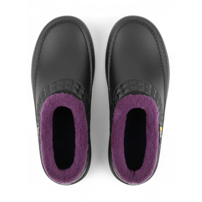 Надзвичайно легкі, теплі та зручні **калоші-сабо** ідеально підходять для швидкого взування та роботи на свіжому повітрі. Водонепроникний матеріал ЕВА у поєднанні з яскравим фіолетовим хутром гарантує тепло та сухість ваших ніг.