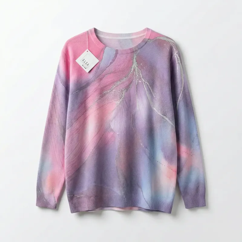 🛒 Шукаєте надійний товар? Ви можете купити Жіночий джемпер G.L.S.A з мармуровим принтом, яскрава кофта рожево-фіолетова, нарядний светр абстракція в нашому інтернет-магазині Shtyrman. Гарантія якості та швидка доставка по всій Україні!