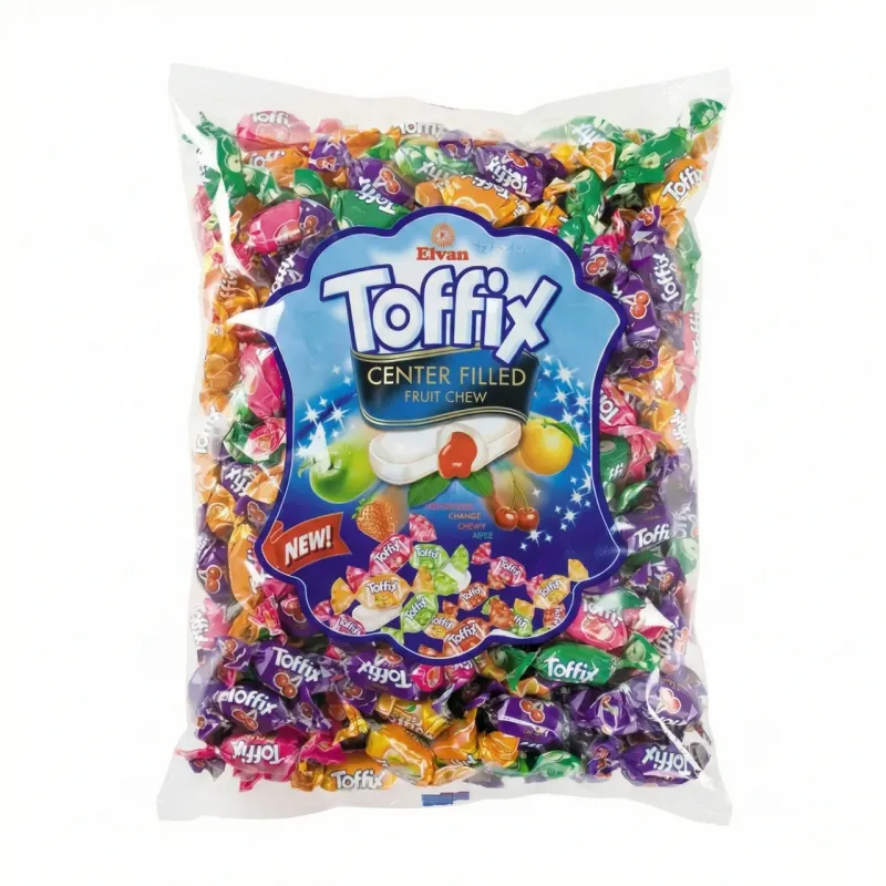 Toffix Fruit Chew — це вибух фруктового смаку в кожній цукерці! Легендарні жувальні цукерки від турецького бренду Elvan, які полюбилися як дітям, так і дорослим. Головна особливість Toffix — це м'яка жувальна оболонка та соковита рідка начинка всередині, яка миттєво розкриває насичений смак фруктів. У великій упаковці (мікс) зібрані найпопулярніші смаки: яблуко 🍏, полуниця 🍓, вишня 🍒 та апельсин 🍊. Кожна цукерка має індивідуальну яскраву обгортку, що робить їх ідеальним варіантом для частування в офісі, школі, на дитячих святах або просто для наповнення домашньої вазочки з цукерками. Цукерки виготовлені з якісних інгредієнтів, не прилипають до зубів так сильно, як ірис, і мають приємну текстуру. Купуючи велику упаковку, ви отримуєте вигідну ціну та великий запас солодощів для всієї родини. Характеристики: Виробник: Elvan (Туреччина) Тип цукерок: Жувальні з рідкою начинкою (Center Filled) Смаки в міксі: Яблуко, Полуниця, Вишня, Апельсин Вага упаковки: 1 кг (заводська упаковка) Упаковка: Пакет