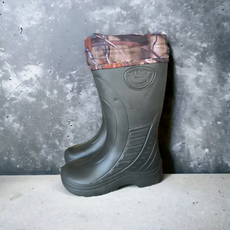 Чоловічі чоботи з піни ЕВА з вийманим утеплювачем панчохом. У наявності розміри 41/42, 42/43, 43/44, 44/45, 45/46. Всесезонна модель чоловічих чобіт для риболовлі, полювання та носіння в сльоту, дощ і сніг. Виробництво фабрики Krok (Україна). Виготовлені за зразком чоботи Norfin. Експортна модель. Постачається в країни ближнього та дальнього зарубіжя, зокрема в Канаду, Норвегія, Данію, Ісландію. Стильний ненав'язливий дизайн, комфорт і якість. Мають Європейський сертифікат. Чудові чоботи для рибалки та мисливця — підходять як для всіх польових сезонів — зимової риболовлі та полювання, так і для літньої осінньо-весняної. Зручні в повсякденному використанні в сільській місцевості, під час виїзду на природу, дачу та взагалі найкращий вибір для носіння в холодну, сиру та морозну погоду. ЕВА піна неабияк перевершує за своїми характеристиками гуму, не кажучи вже про вищий рівень комфорту. Потовщена рифлена підошва забезпечує високу стійкість на слизькому ґрунті, камуфльований захисний манжет захищає від потрапляння всередину бруду, піску, пилу, снігу та вологи. Розмірна лінійка: Розмірна сітка у сантиметрах, заміри зроблені за устілкою (підошва панчоха утеплювача) : Розмір 41/42 42/43 43/44 44/45 45/46 Устілка (см) 26,5 27 27,5 28.3 29,5-30.0 Висота чобіт — 40 см Вага — 750 грамів (43 розмір) Універсальні чоловічі чоботи. Носіння — всесезонне. Можна також використовувати як захисне чоловіче робоче взуття. Товста підошва захищає від проколів, ЕВА піна має високу стійкість до агресивного середовища, олію й бензостійка, повністю вологонепроникна. Чудовий вибір для тих, хто працює в сирому та вологому приміщенні. Доставка у всі населені пункти України. Розмір чобіт 38 39 40 41 42 43 44 45 46 47 Маркування чоботи 23,5 24,5 25,5 26,5 27,5 28,5 29,5 30,5 31 32 З усіх питань звертатися до менеджера з продажу за номерами телефонів, зазначених на сайті онлайн-магазину «Штурман». Можна використовувати популярні месенджери Viber і WhattsApp.