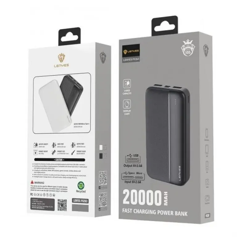 Зовнішній акумулятор Lenyes PX263 обирають активні люди, які не люблять довго сидіти на місці та постійно подорожують, йдуть у тижневі походи і не люблять залежати від розеток. Незважаючи на величезну ємність у 20000 мАг, він важить всього 365 грамів. У нього стандартний набір роз'ємів: два вихідних USB для одночасного заряджання двох гаджетів і вхідний micro-USB або Type C для заряджання самого пристрою. Практичний, надійний і якісний аксесуар стане для вас незамінним помічником і допоможе завжди залишатися на зв'язку.